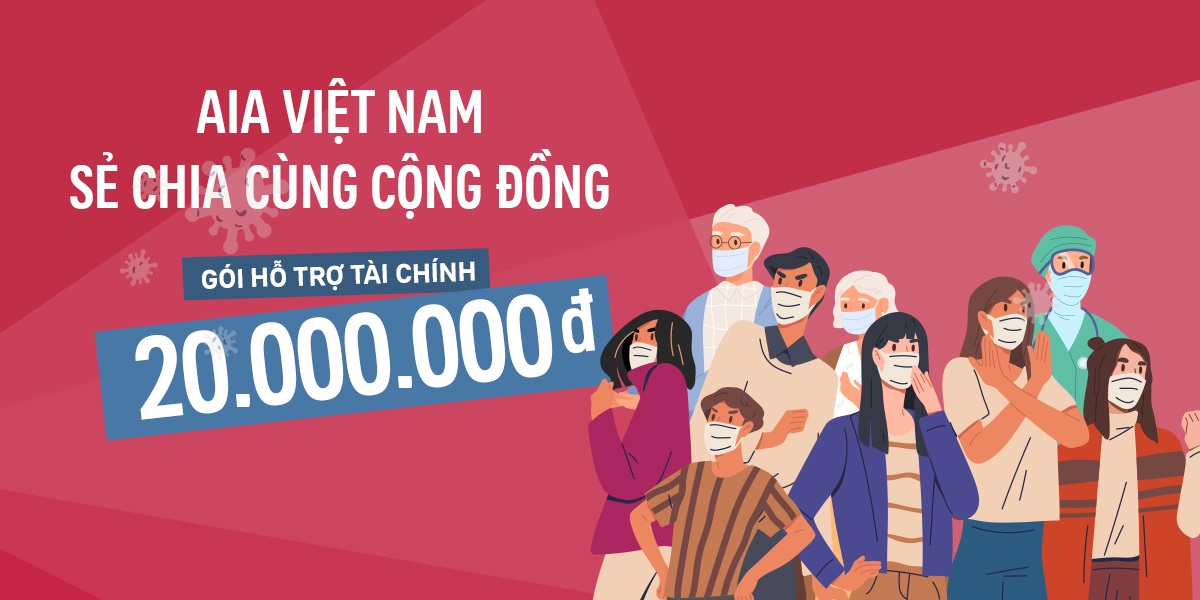 - Đây là Khoản hỗ trợ dành cho cộng đồng với toàn bộ kinh phí được trích từ ngân sách của AIA Việt Nam, không phải là một chương trình khuyến mại. Chương trình này cũng không phải là một sản phẩm bảo hiểm hay thuộc đặc tính của bất kỳ sản phẩm bảo hiểm nào của AIA Việt Nam.