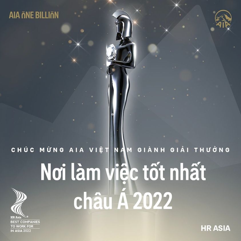 Cùng với danh hiệu “Môi trường làm việc lý tưởng” (Great Place To Work® 2021) trong 4 năm liên tiếp, Giải thưởng “Nơi làm việc tốt nhất châu Á” là một sự ghi nhận và niềm tự hào to lớn đối với toàn thể đội ngũ nhân viên AIA Vietnam trên hành trình giúp Cộng đồng sống Khỏe hơn, Lâu hơn, Hạnh phúc hơn.