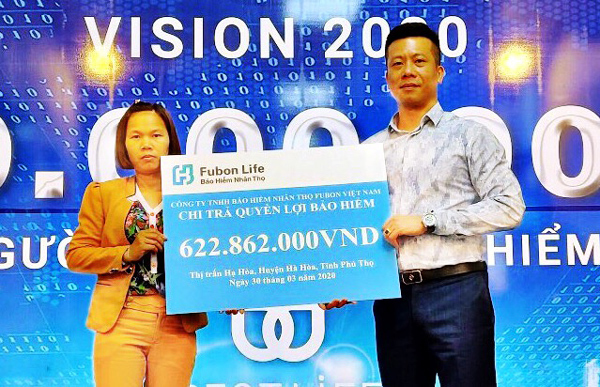 Fubon Life Việt Nam vừa chi trả quyền lợi bảo hiểm cho gia đình khách hàng N.V.N (38 tuổi) không may tử vong tại Phú Thọ. Tổng số tiền chi trả quyền lợi bảo hiểm lên tới 622.862.000 đồng.