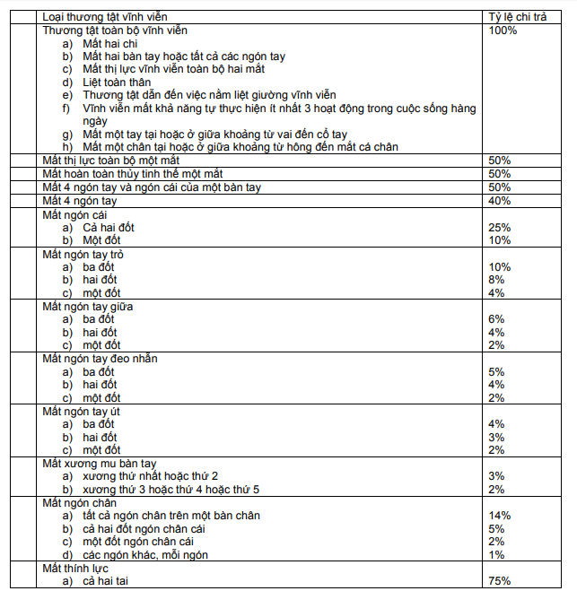 Mục 1: Tử vong và thương tật vĩnh viễn do tai nạn