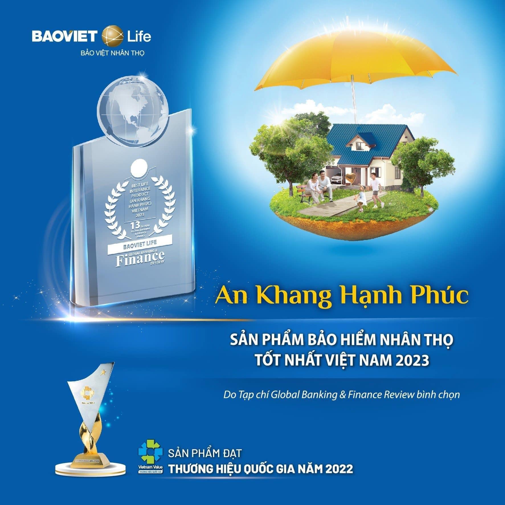 Ngày 01/04/2023, Bảo Việt Nhân thọ tự hào đón nhận 2 giải thưởng "Doanh nghiệp bảo hiểm nhân thọ tốt nhất cho gia đình Việt Nam 2023" và "An Khang Hạnh Phúc - Sản phẩm bảo hiểm nhân thọ tốt nhất Việt Nam 2023" do Global Banking and Finance Review bình chọn.