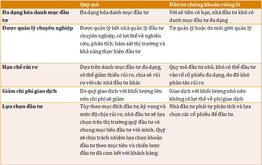 So sánh quỹ mở với đầu tư chứng khoán riêng lẻ