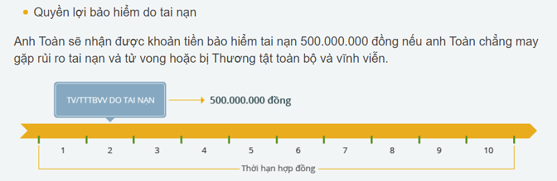 • An tâm với bảo vệ tài chính trước các rủi ro tử vong hoặc Thương tật toàn bộ và vĩnh viễn do tai nạn;